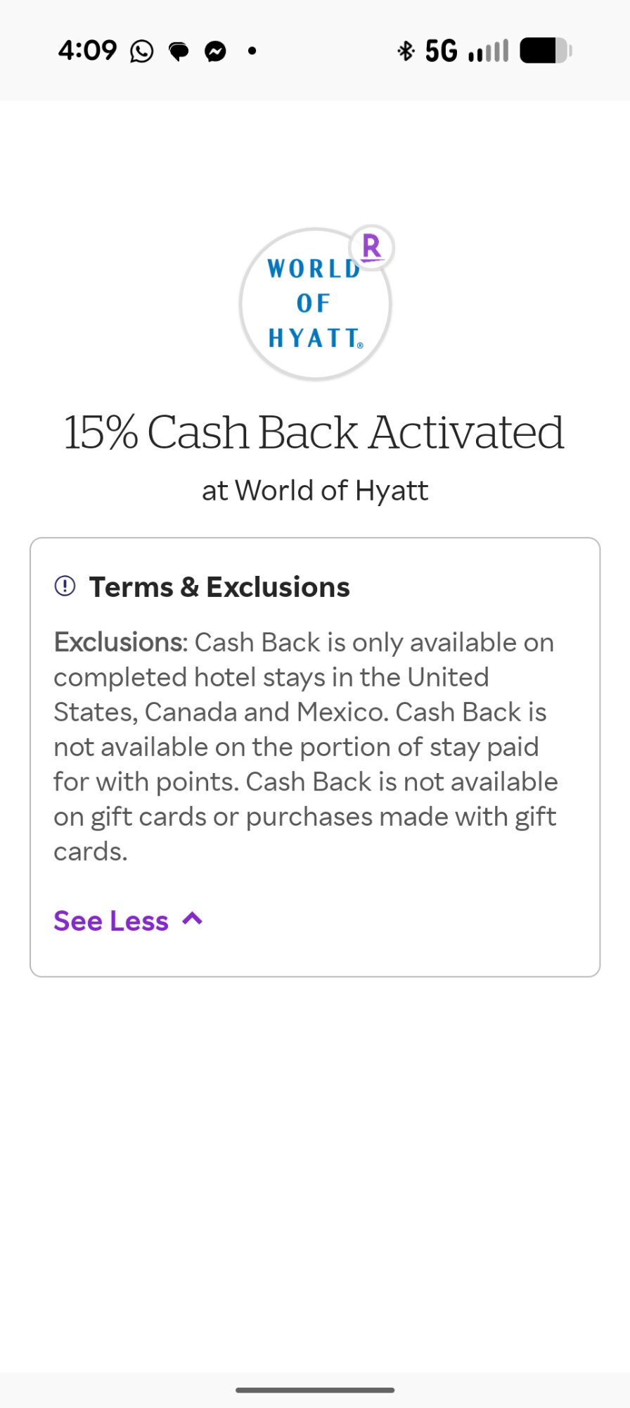 - Cash Back is not available on gift cards or purchases made with gift cards
