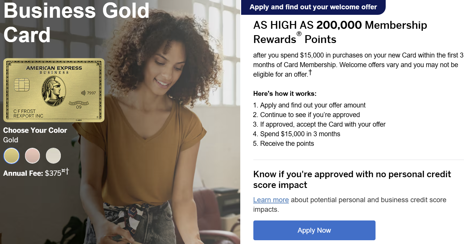 200,000 points is a superb welcome offer for the Business Gold, but unfortunately, there’s no guarantee you’ll actually get it. Amex has been playing around with this “as high as” business for some time, applying it to more and more cards (including the Business Platinum®, which is “as high as” 300,000 points).