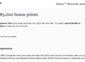 Atmos Ascent card: New offer for 85K miles + Companion Fare