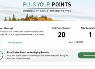 Earn free Enterprise Car Rental points with Plus Your Points promotion