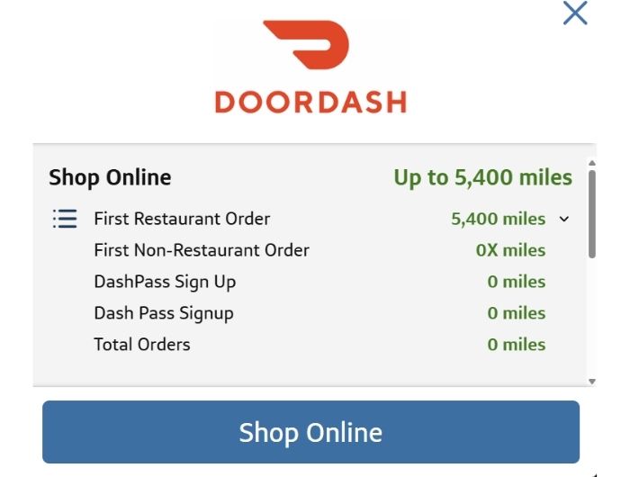 There aren’t any terms specifying a minimum order amount, and while it does say that you get miles for your “first” order, it doesn’t say that it needs to be the first time that you’ve ever used DoorDash.