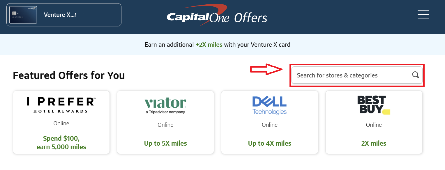 You can also find Capital One Offers by logging into your Capital One account, where it will appear as a box towards below your account information on the landing page: