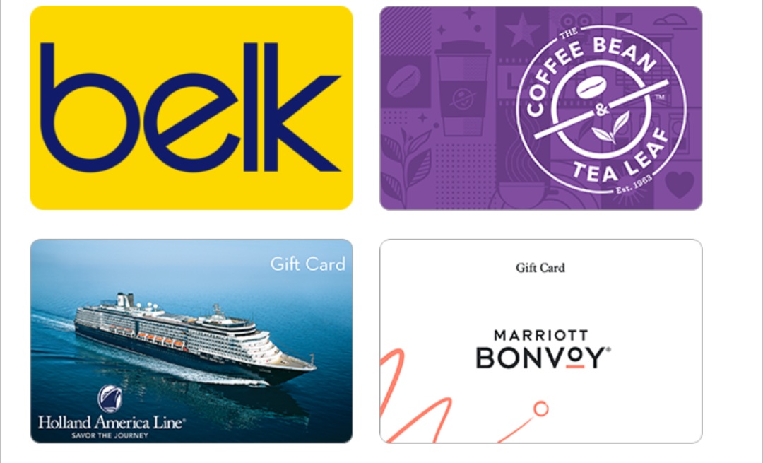 - Note that gift card redemption options vary by user, so you may not see the same options