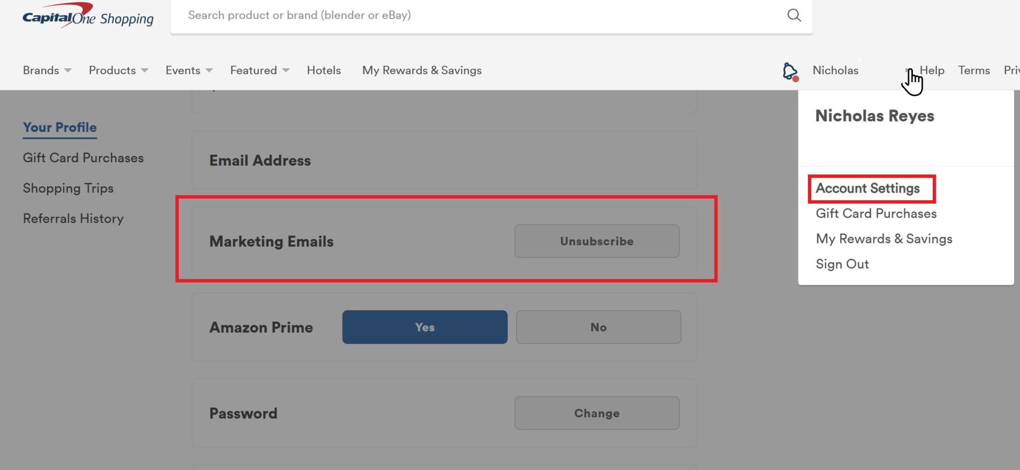 As mentioned above, Capital One Shopping is a shopping portal that is almost completely separate from Capital One. The only way it is connected to Capital One (apart from being owned by Capital One) is that members have the option to create an account with an email address (i.e. without a Capital One credit card account) or to log in with their Capital One credentials. I have previously recommended creating a login with an email that is not associated with a Capital One credit card account.