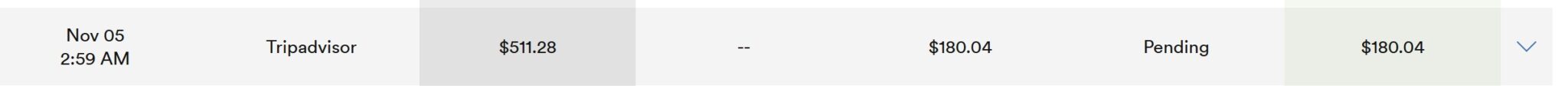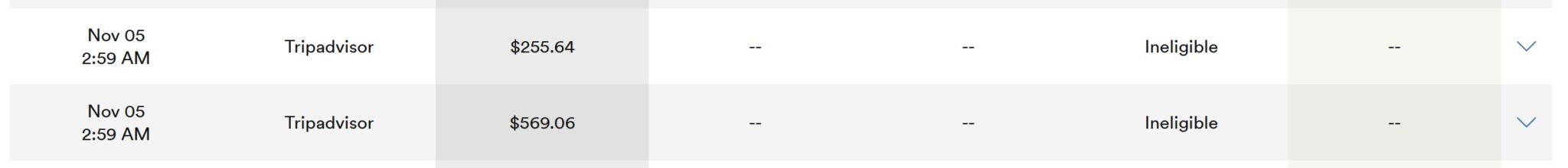 Stephen recently covered a terrific targeted Capital One Shopping deal for TripAdvisor purchases. While Stephen reported the deal at 65% back, I actually got targeted for 70% back. I made a couple of bookings, all of which initially tracked as “ineligible”. However, as per Capital One Shopping terms, the purchase went from “ineligible” to “pending” after the activity was completed.