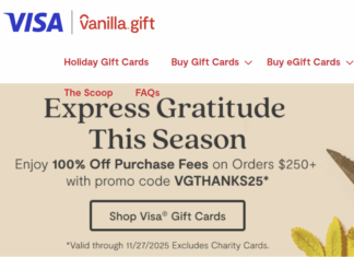VanillaGift.com is once again waiving purchase fees when buying Visa gift cards, this time by using promo code VGTHANKS25.