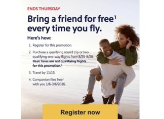 Southwest Airlines has brought back its popular temporary Companion Pass offer whereby you can book a qualifying round trip or two one-way flights between...