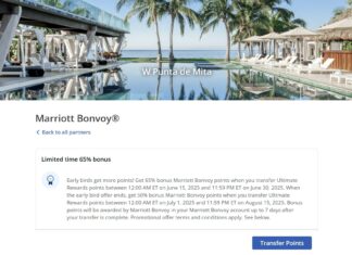 Chase Ultimate Rewards offered a limited-time 65% transfer bonus when transferring your points to Marriott Bonvoy between 12:00am ET on June 15, 2025 and...