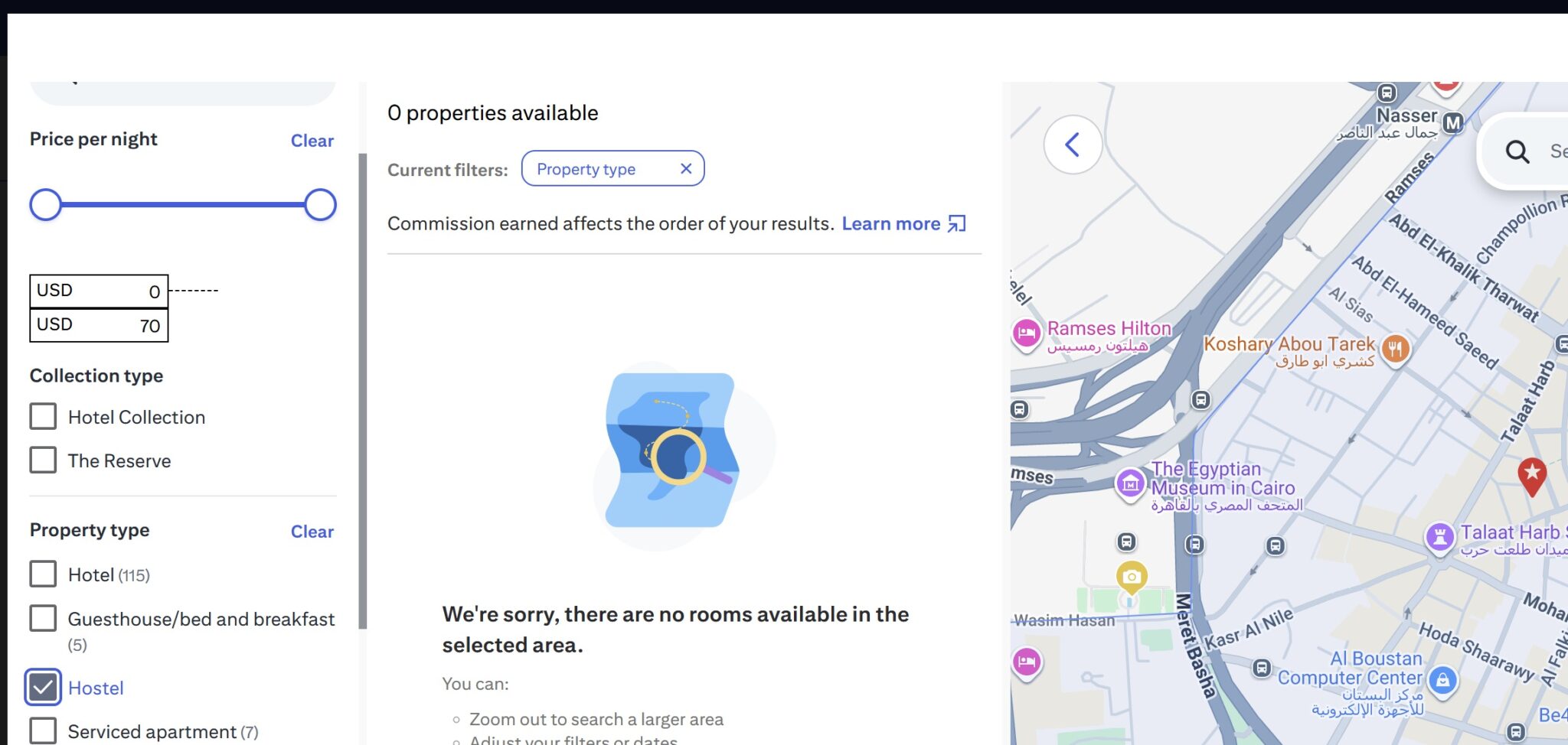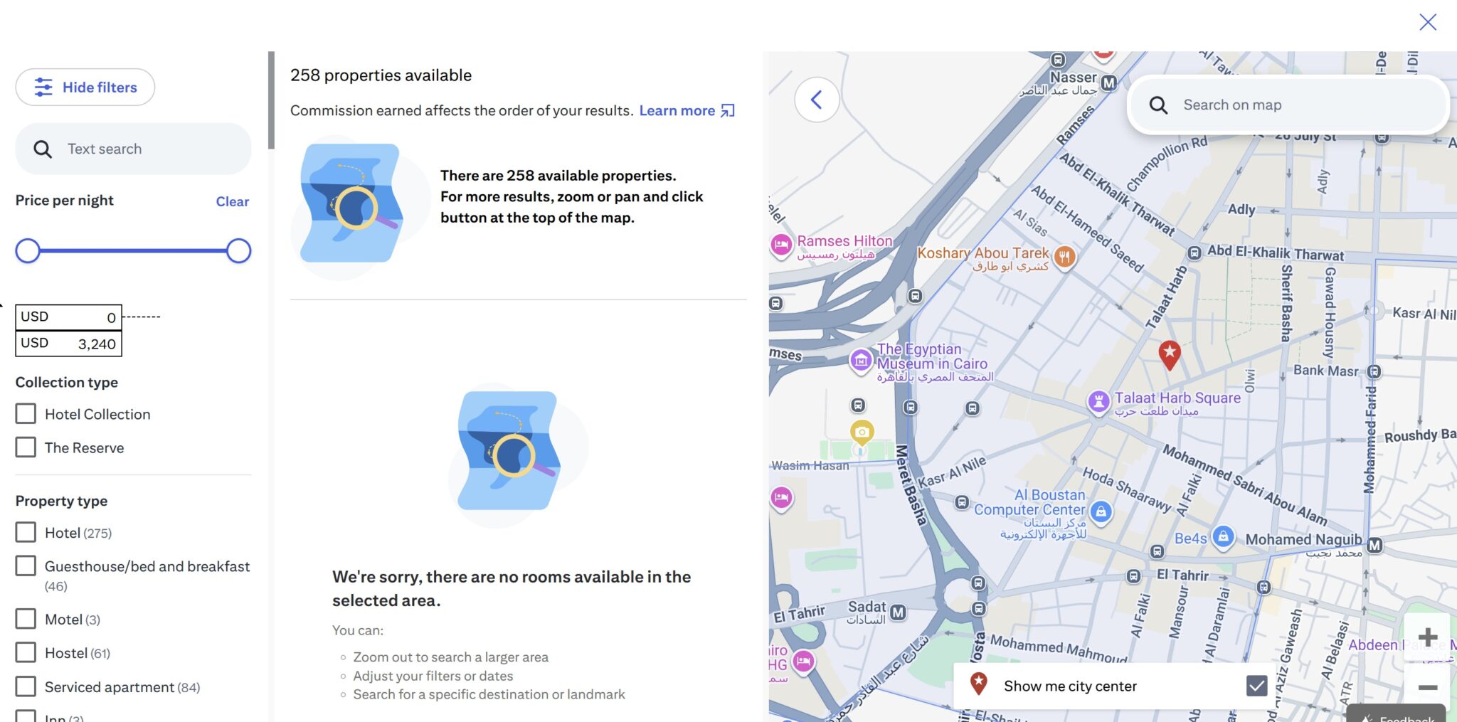 For instance, see this search for properties in Cairo, Egypt from February 9-11, 2026.