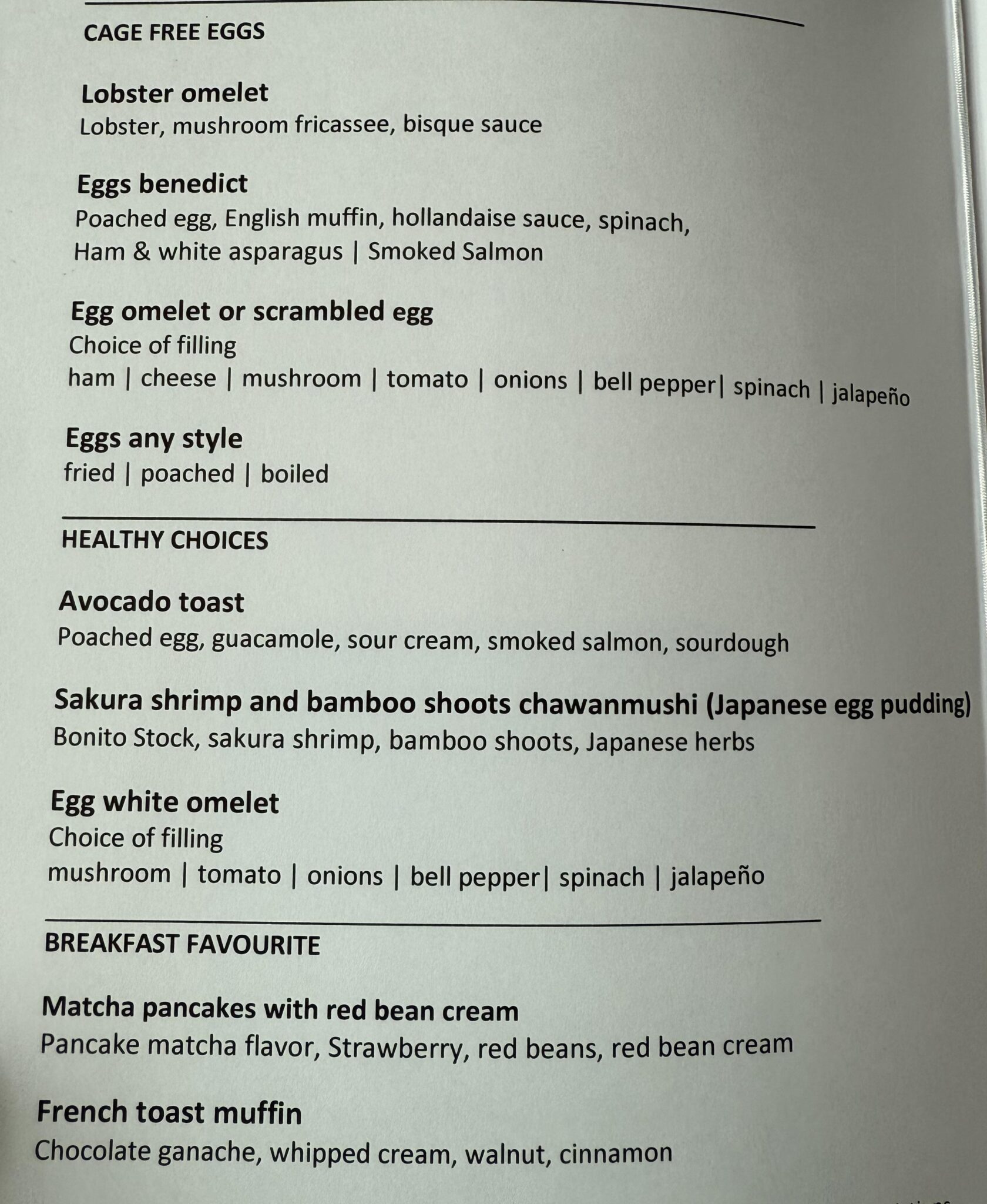 I had the Uni scrambled egg in lounge. I hear it is not available in the restaurant downstairs.