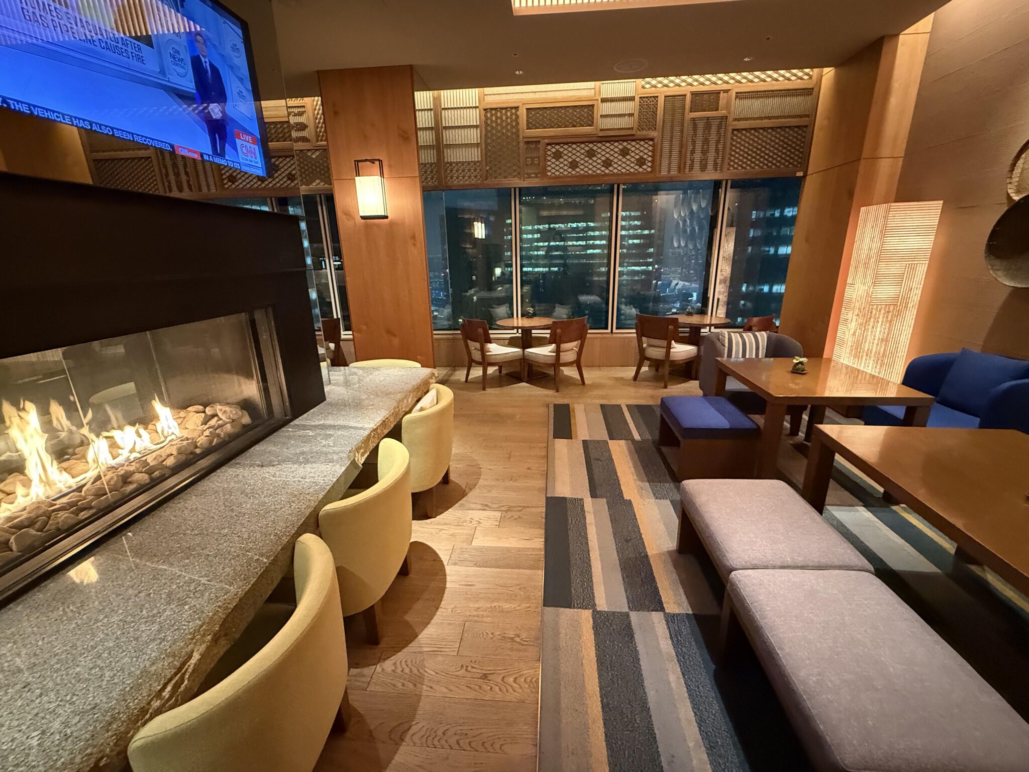 - Club Lounge: The hotel has a beautiful executive lounge that wraps around a sizeable gas fireplace. There are lovely views day and night. During the day, soft drinks, snacks, coffee, and tea are available. Cocktails, hot dishes, and a stellar whiskey selection emerge in the evenings. It was an inviting, cozy place to warm up before or after dinner plans.