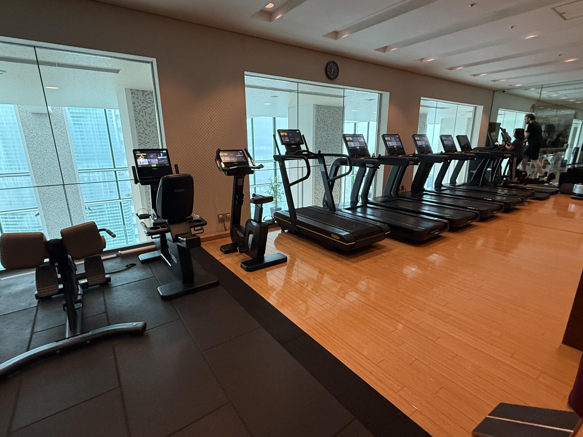 - Fitness Room: Located adjacent to Mizuki spa, the large fitness center is well equipped with cardio, resistance, and calisthenics equipment. There is a steam room, sauna, and swimming pool on site.