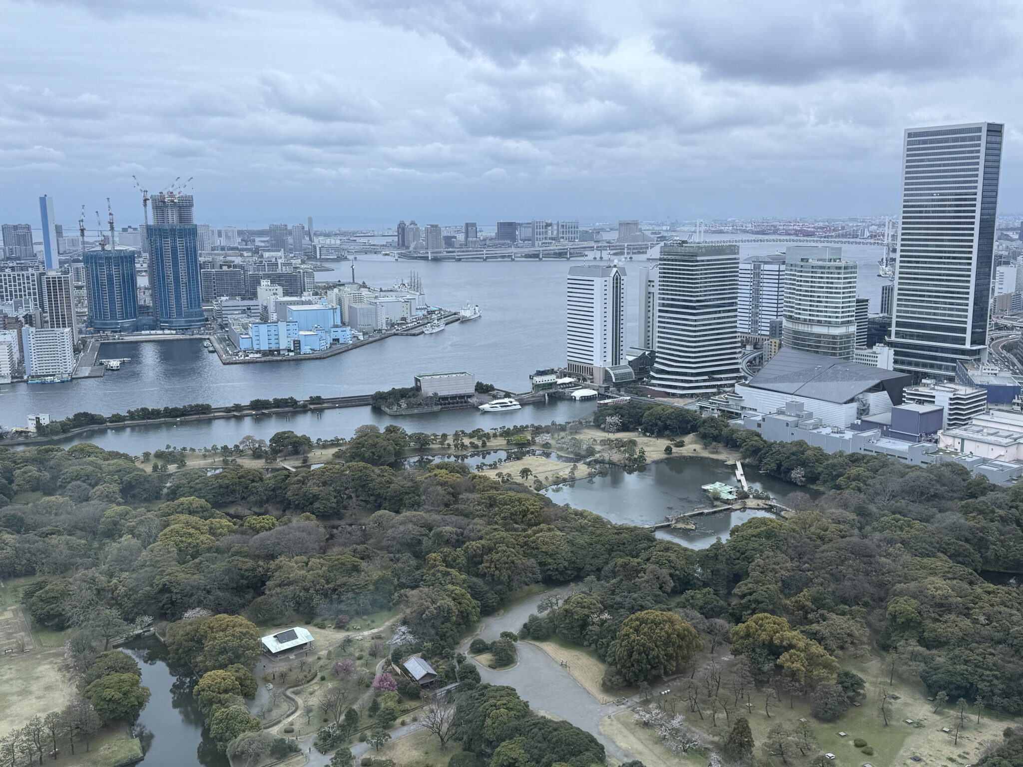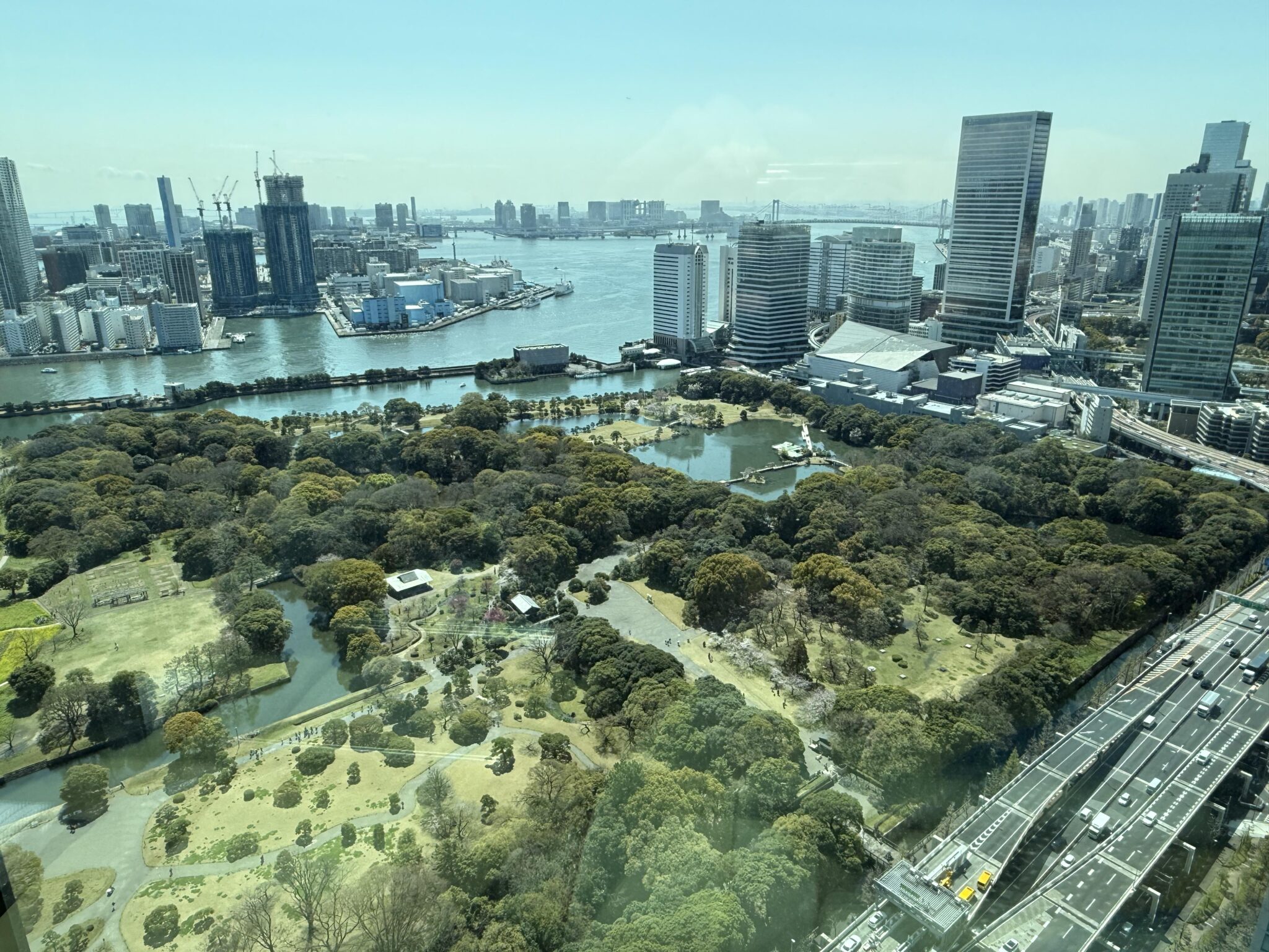 - Location: The Conrad gets some shade because it’s located in the middle of several office-like skyscrapers in a business district on the southern edge of Ginza. However, I appreciated the location for exploring Tokyo. The Shiodome metro station is directly below it, with access to the Oedo and Yurikamome lines, while the Ginza and Asakusa lines (along with Japan Rail) can be reached via a short walk along raised walkways to Shimbashi Station. There’s a terrific park directly across the street (Hamarikyu Gardens), as well as a smattering of worthwhile bar/restaurant alleyways (Yokochos) nearby. It’s also ideally located for an early-morning visit to Toyosu or Tsukiji Markets, both less than a 10-minute ride away. You could also walk to Tsukiji in about 15 minutes.