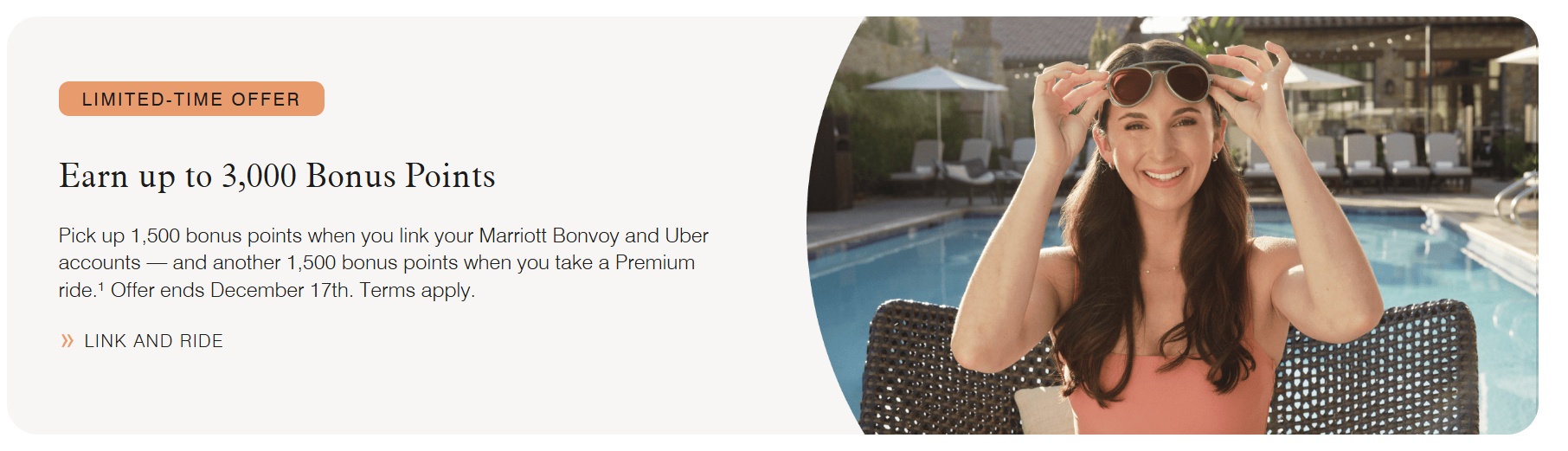 Marriott now has another such offer that gives up to 1,500 bonus Bonvoy points when you link your accounts, and then another 1,500 after taking a premium ride.