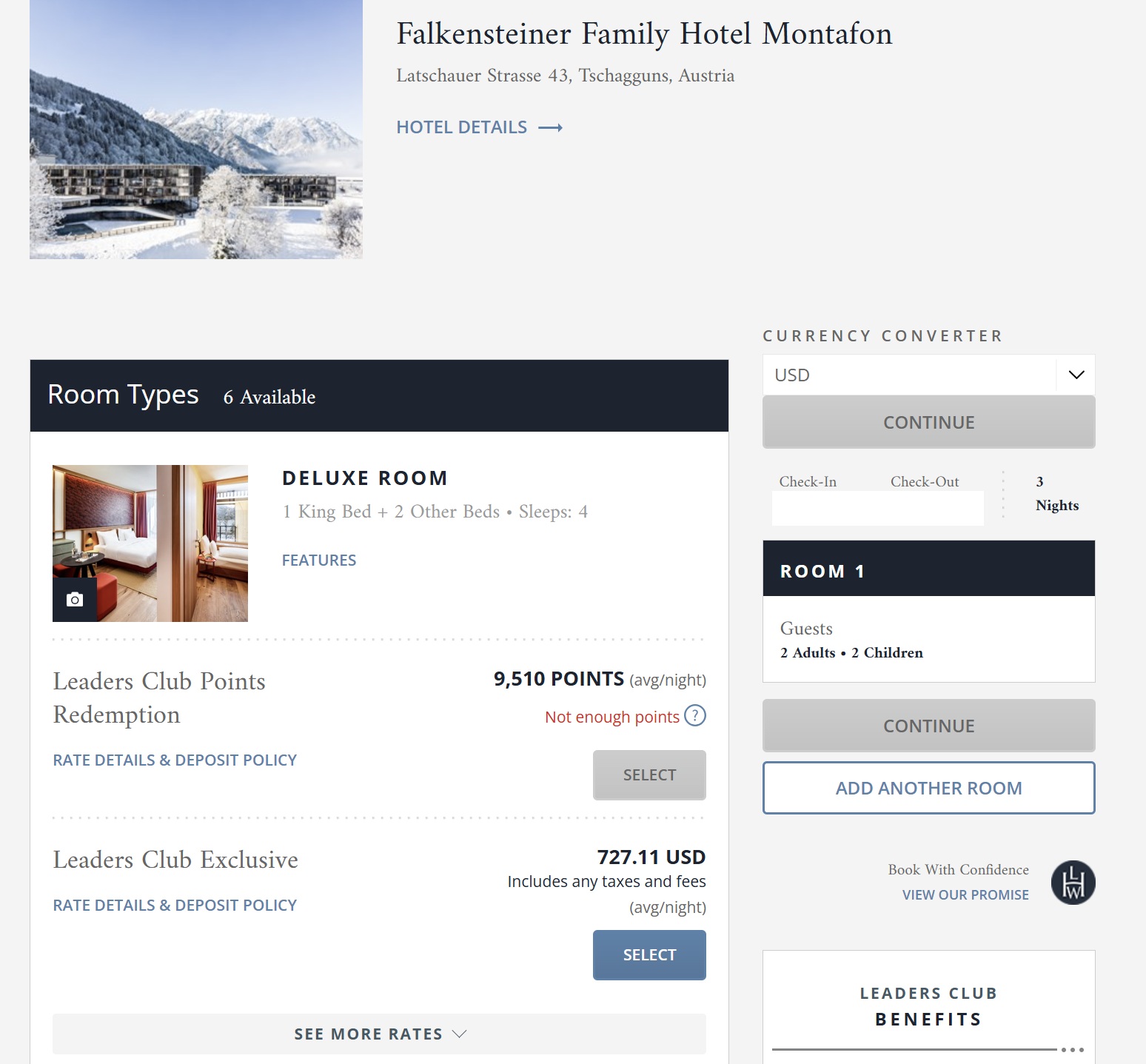 Keep in mind that 9,510 Leading Hotels of the World points = 47,550 Citi ThankYou points. That’s about 1.53c per Citi point, which makes it a reasonable use of points. I could imagine this property being more popular in the winter, given the skiing available — expect both cash and award rates to vary.