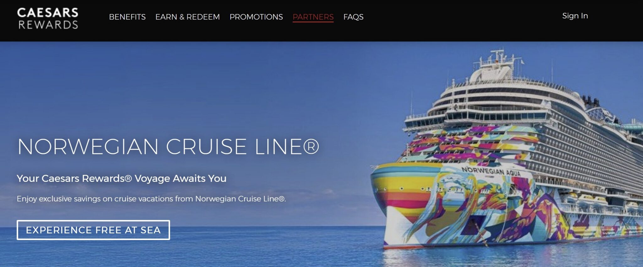 - Caesars Rewards has launched a partnership with Norwegian Cruise Lines whereby Caesars members can enjoy savings on Norwegian, with Diamond Elite members able to take advantage of an offer for a 7-night Oceanview cabin cruise offer to “the Caribbean, Bermuda, the Mexican Riviera, and more” or an Interior cabin cruise offer to Alaska.