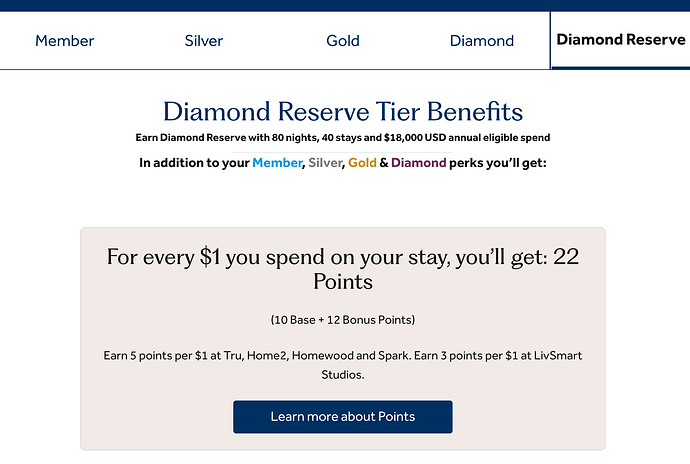 There’s not much known about the benefits of the status, outside of earning 22x on Hilton spend, and having access to a new Milestone Rewards at 120 nights that includes a confirmed suite upgrade. Another interesting tidbit is that thresholds for Silver, Gold, and Diamond status will be reduced by 30% once Diamond Reserve is introduced…which would most likely have little impact since anyone spending that amount of time at Hilton properties probably has one of the credit cards as well.