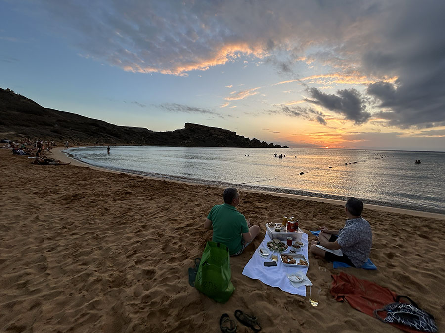 Greg had a food-focused activity almost every day of his trip (3 of the 4 days). First, he invited his old couch-surfing connection from 40K to Far Away to reprise the sunrise picnic he’d created in Johannesburg, South Africa, 6 years before, this time with a sunset beach picnic instead. The picnic focused on local dishes (curated by chef Bjarne). Next, he sampled the most famous Maltese pastry (pastizzi) at the pastizzi shop most recommended by the tour guide of the free walking tour he participated in. And finally, he splashed out on the final night with a (very affordable) 7-course tasting menu at a traditional restaurant selected by the same Culinary Concierge he’d traveled with a few years ago in 3 Cards 3 Continents. By the time he left, he had sampled many local dishes at very reasonable expense.