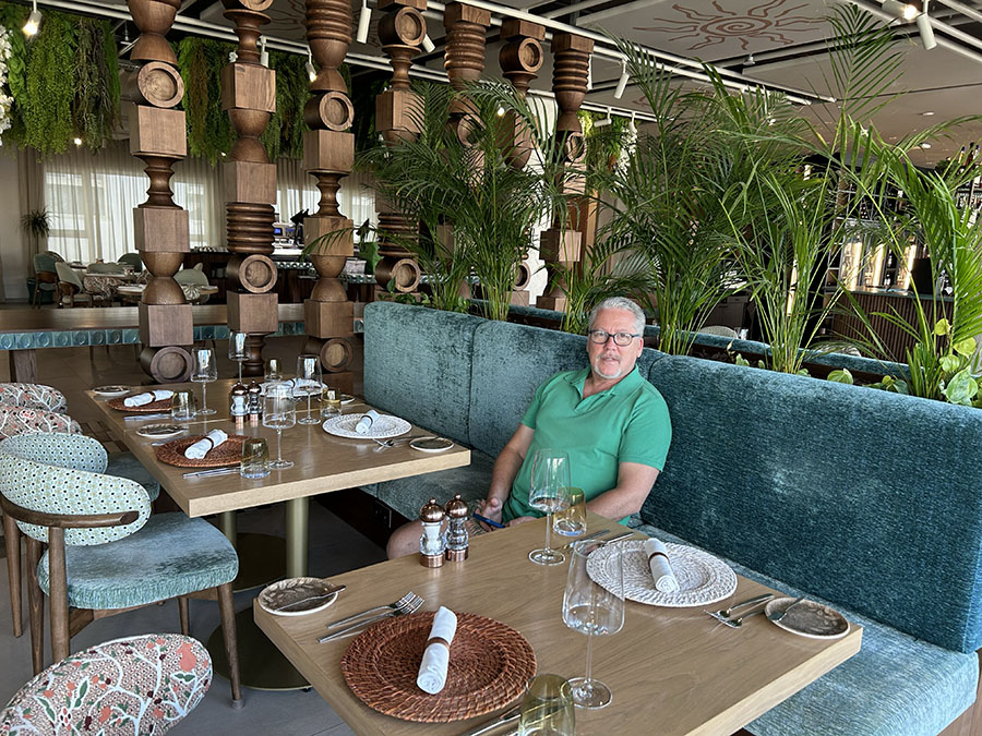 Greg’s longest international flight (Air Serbia Business class) offered a lie-flat bed, a pre-selected meal, and most other standard business-class amenities. He noted that not all seats seemed equivalent, but he selected one with the optimum amount of space, storage options, and aisle access. Greg’s second-longest flight (Virgin Atlantic premium economy) offered plenty of legroom, good seat recline, footrests, and excellent food and service. Greg also had 4 short economy segments. - Luxury accommodations (6 possible points)