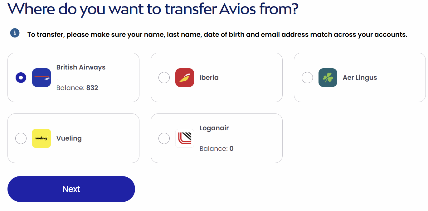The process is slightly different depending on if you’re transfering between BA, Iberia, Vueling, Aer Lingus, and Loganair, or if you’re transfering between BA or Iberia and Finnair or Qatar.