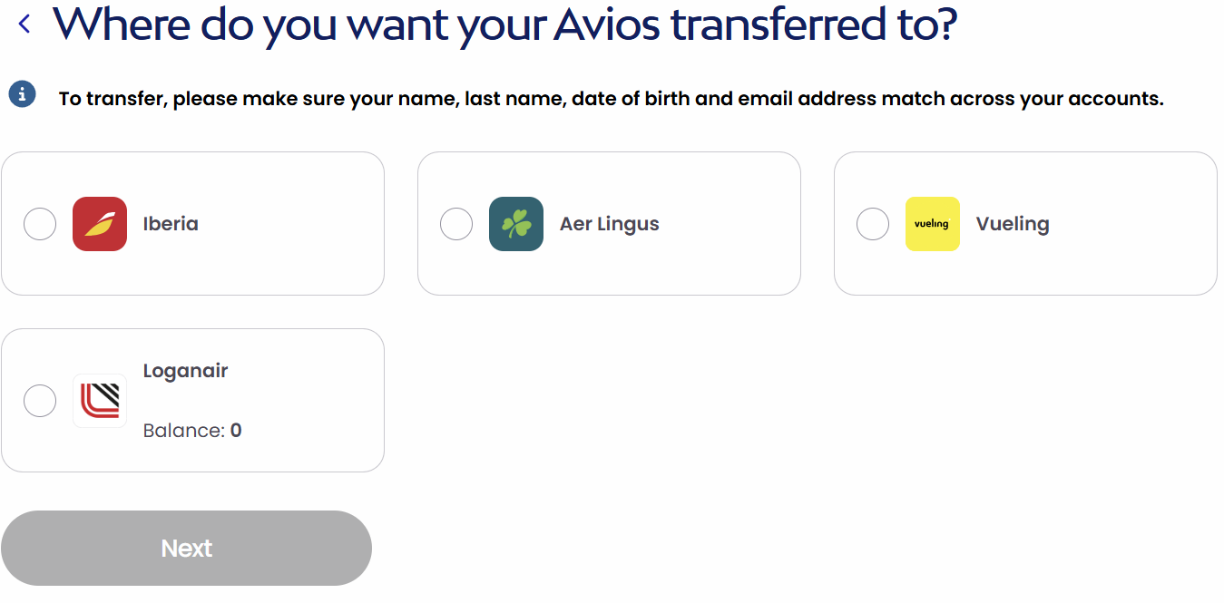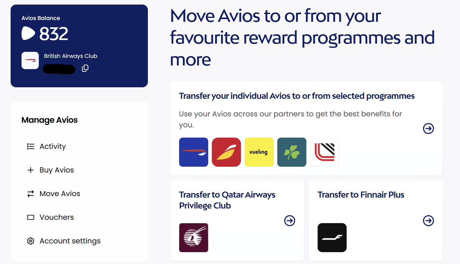 The process to transfer between British Airways or Iberia and Finnair or Qatar is slightly different, as those two programs have their own transfer tool. If you want to move Avios from Finnair or Qatar and Vueling, Aer Lingus or Loganair, you’ll have to move them to BA or Iberia first.