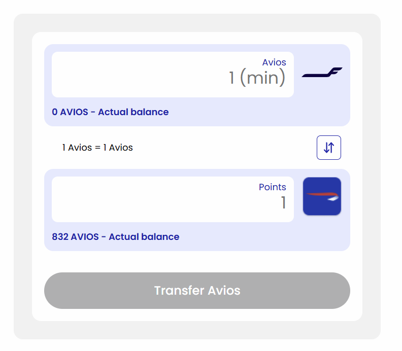 The position shown above would transfer Finnair Avios to British Airways. In order to do the reverse, simply click the up/down arrow.