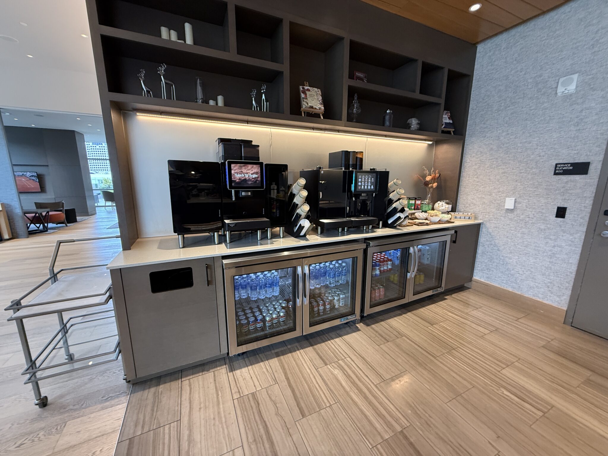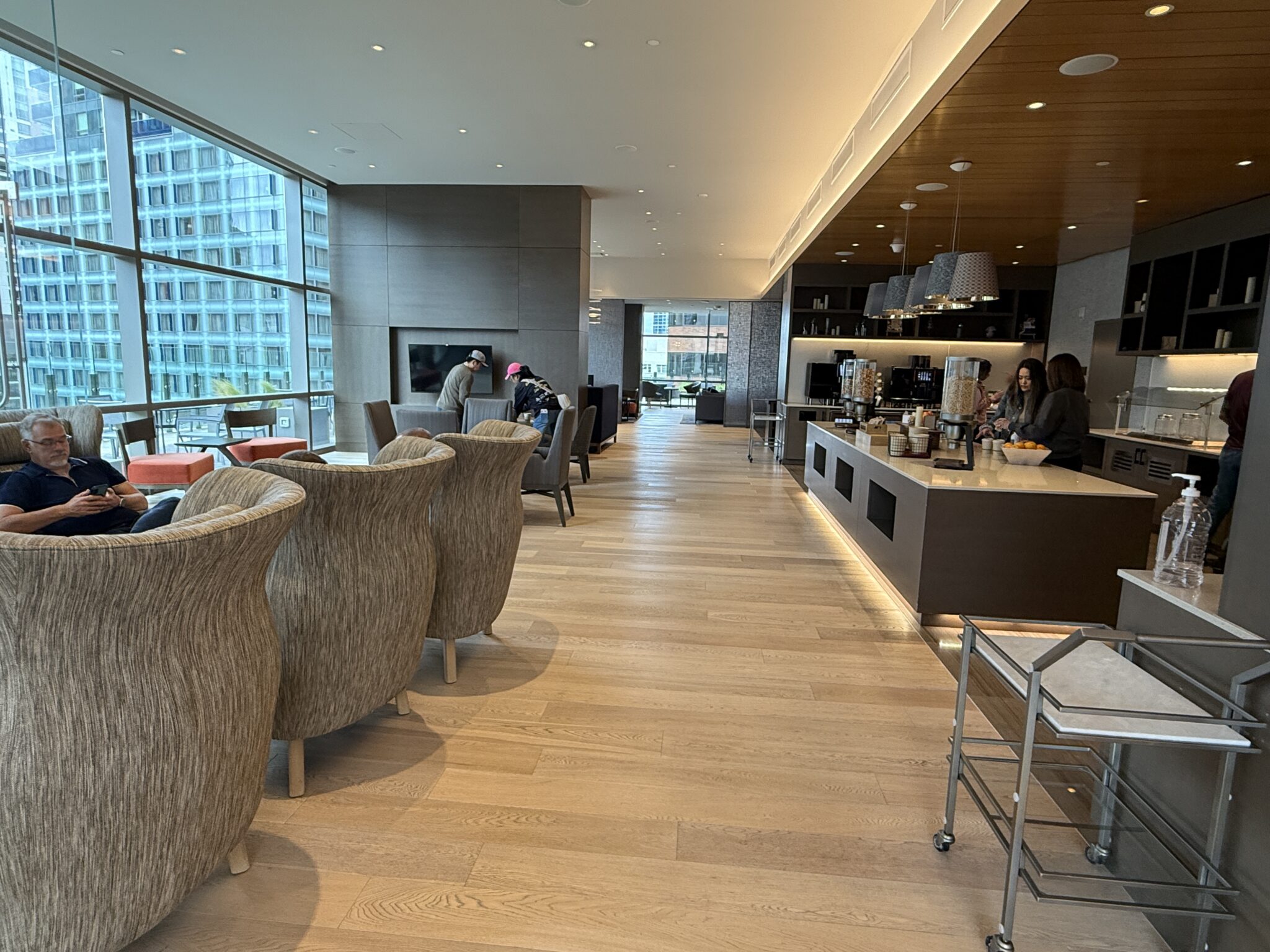 - The impressive lounge doesn’t offer any food or beverage outside of snacks and coffee.
