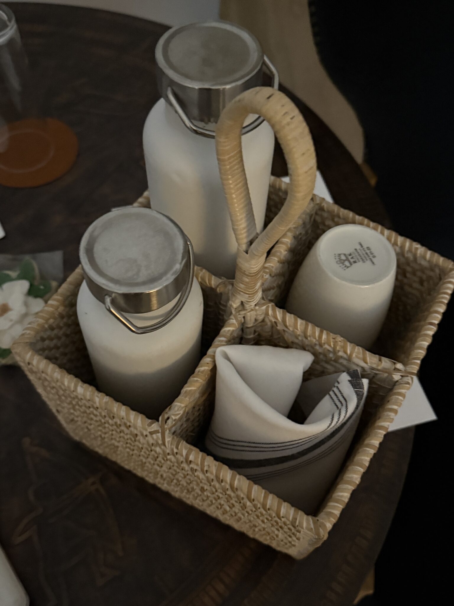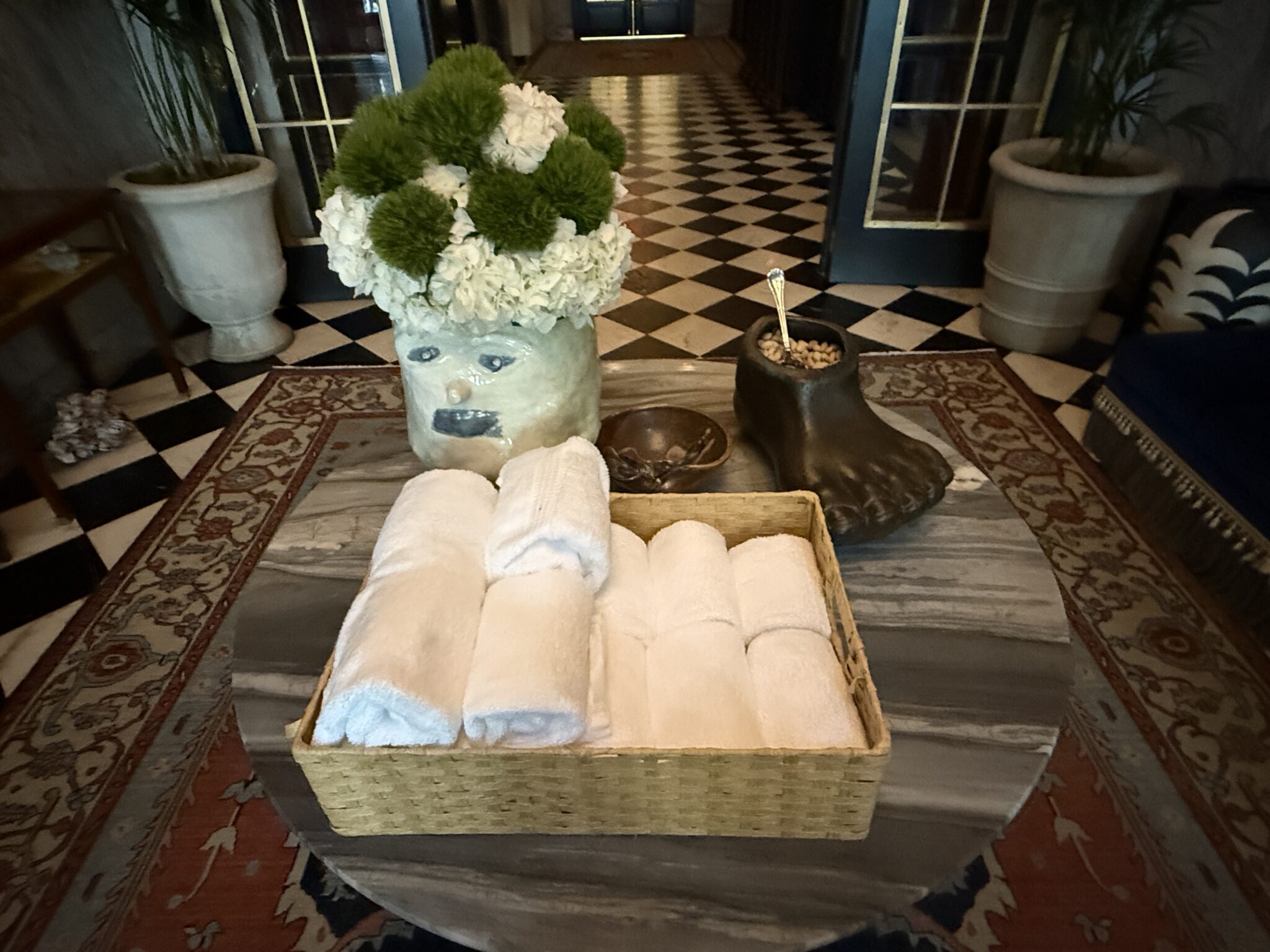 • Service: The most hit-and-miss aspect of our entire stay. Overall, the managers and valets were excellent and engaging, quick to notice needs, offer umbrellas and towels, or provide recommendations. The front desk staff, housekeeping, and restaurant staff weren’t quite as on point. The agent who assisted us at check-in gave us confusing info on how to access the gym next door, neglecting to provide an access key that we needed. She also got our morning coffee order wrong and seemed very confused by Globalist benefits. There is a nifty tassel system behind the front desk, where you return the tassel when you leave, letting housekeeping know that your room is empty and can be cleaned. Great idea, except that it seemed to be disregarded by housekeeping, who knocked on the door each morning regardless of whether we had the tassel or not. Service in the restaurant varied quite a bit; one server was excellent, one was disinterested but proficient, and the last was friendly but completely overwhelmed between the restaurant and room service.