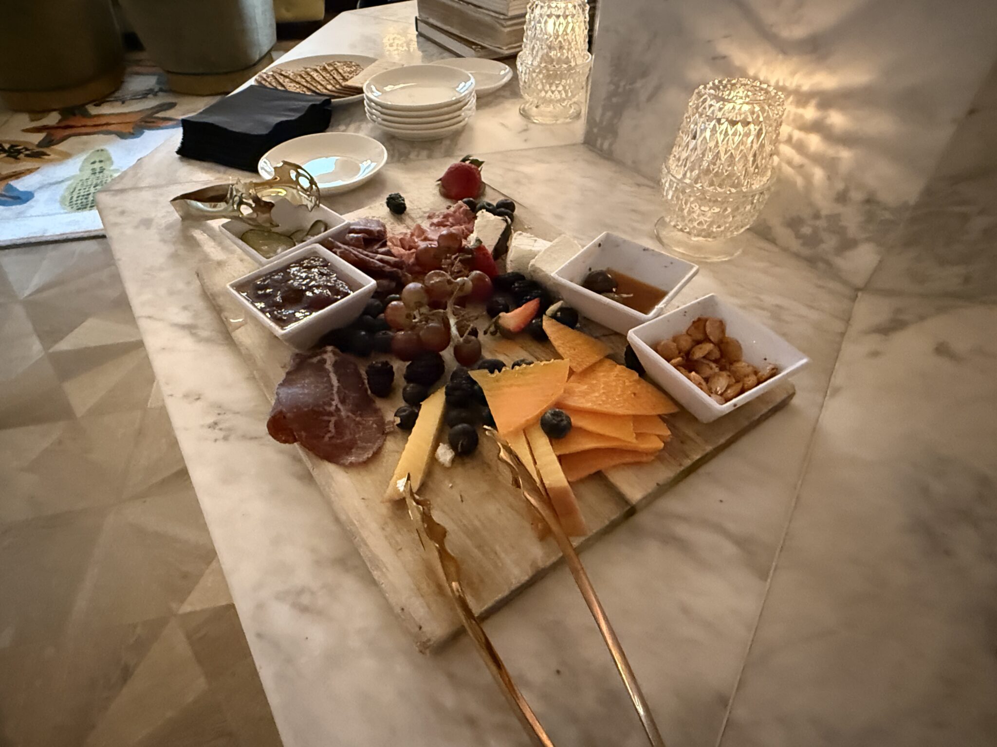 Every afternoon, a sizeable (and replenishable) charcuterie tray comes out for happy hour, along with one red and one white wine. Both were much better than I expected.