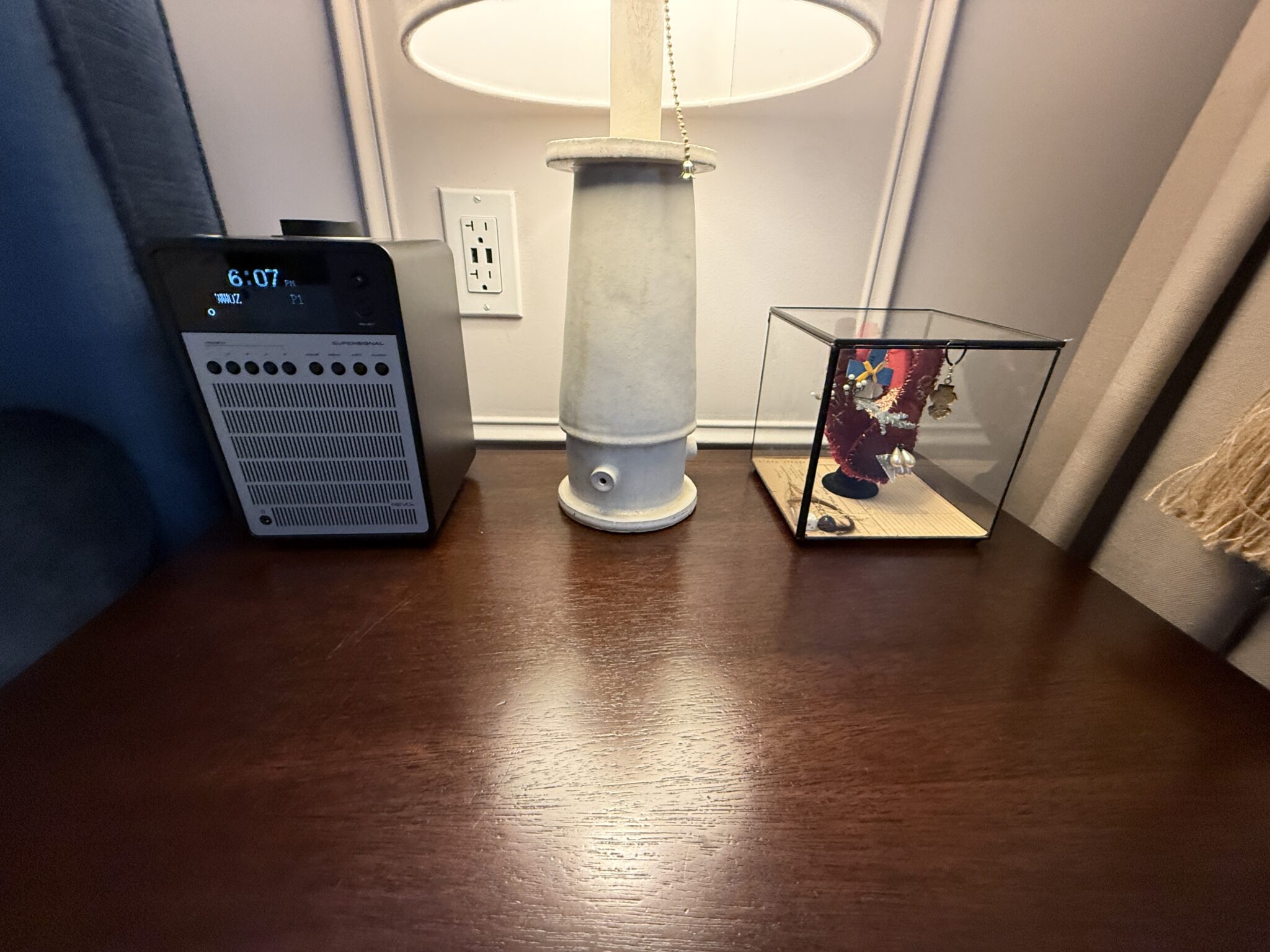 When we came into the room, the retro radio was set to a local jazz station instead of the normal advertisements playing on the tv.
