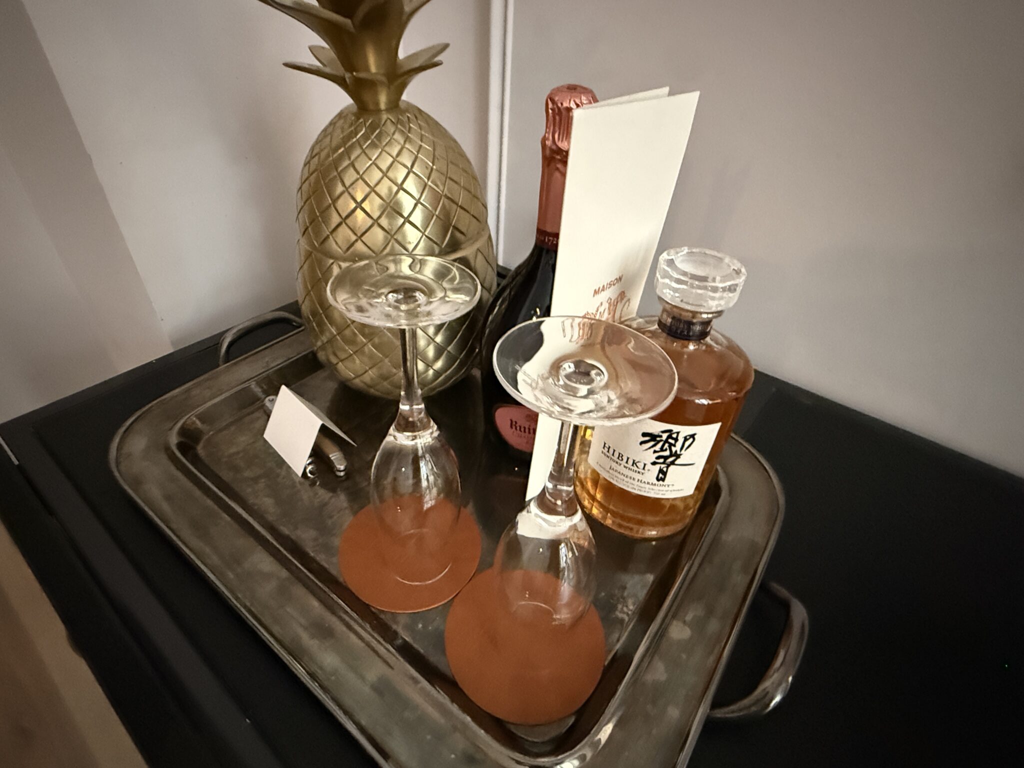 There are some thoughtful little details for guests here. The lack of an in-room coffee machine is made even better by fresh coffee delivered to your door each morning. Wine, cheese, and charcuterie are offered each evening, at which point a bureau opens up to reveal a candle-lit honor bar with all the fixings. Breakfast is delicious.