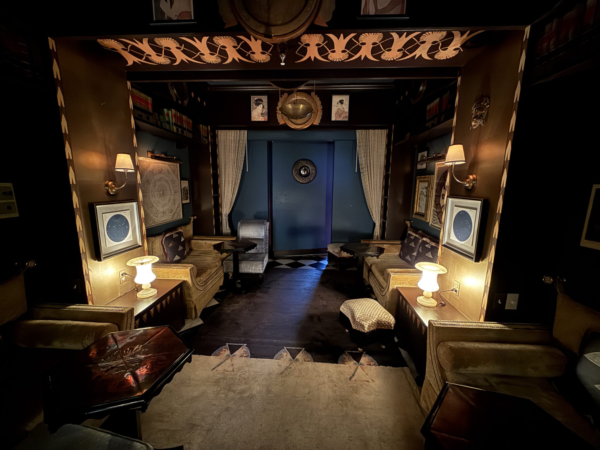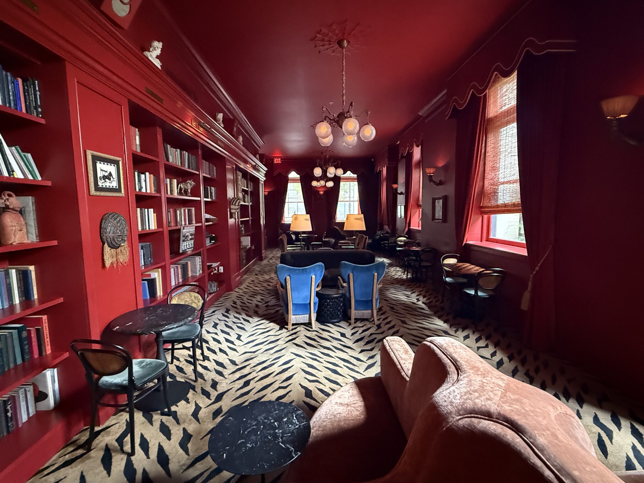 Hidden behind the lobby’s bookshelf is a “speakeasy” cocktail bar (with excellent drinks).