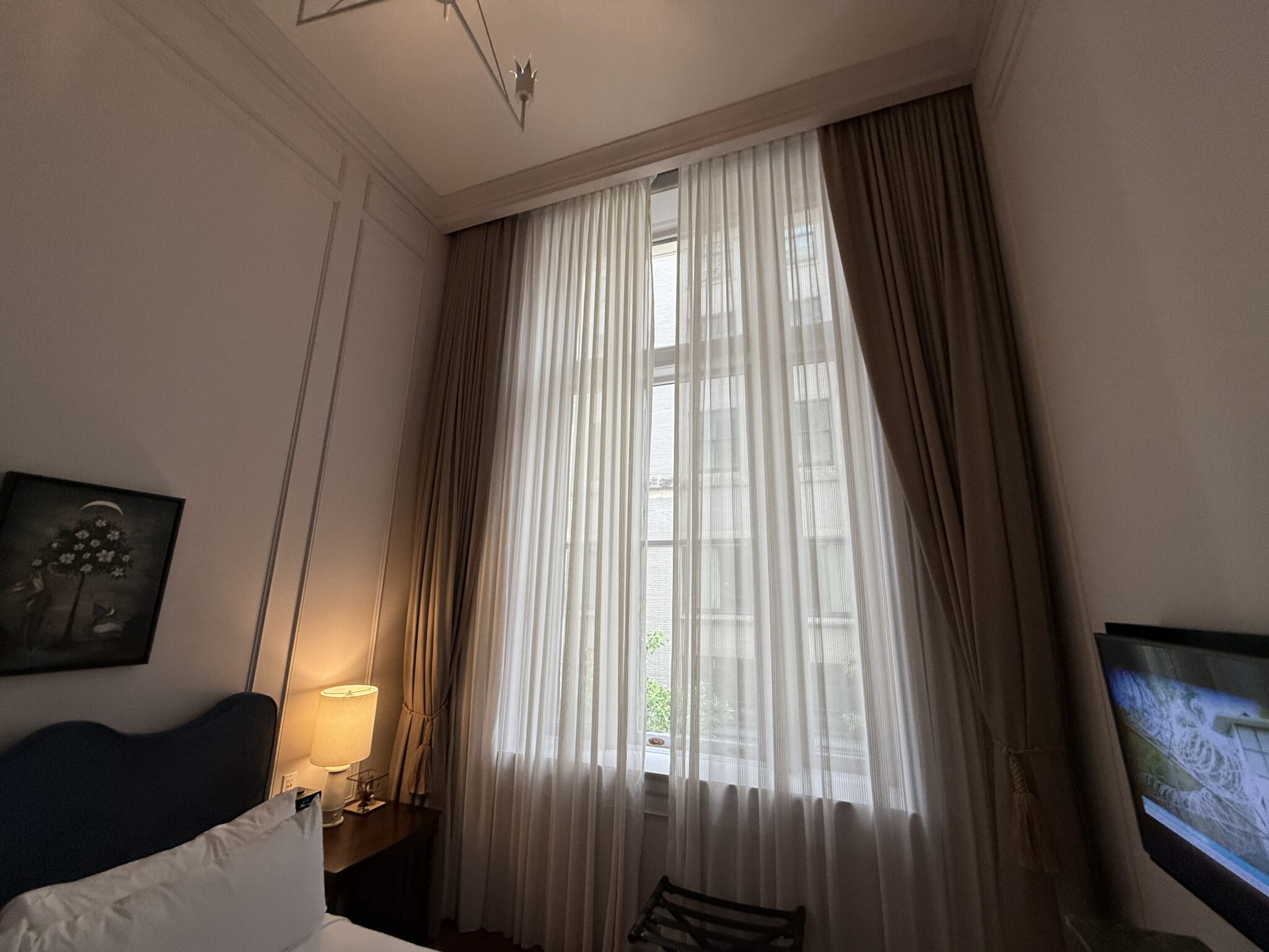 • Room: We booked a standard room with one king and applied a Suite Upgrade Award to be confirmed into a ~620sq ft 1-bedroom suite. The suite felt roomier than the square footage would indicate, partially because of the massive windows and high ceilings, partially because of the gargantuan bathroom. Furnishings were stylishly antique, but very comfortable. Overall, the room was superb in every way, with one minor gripe: the combination of elevated light fixtures and rainy/cloudy days made things a bit dark.