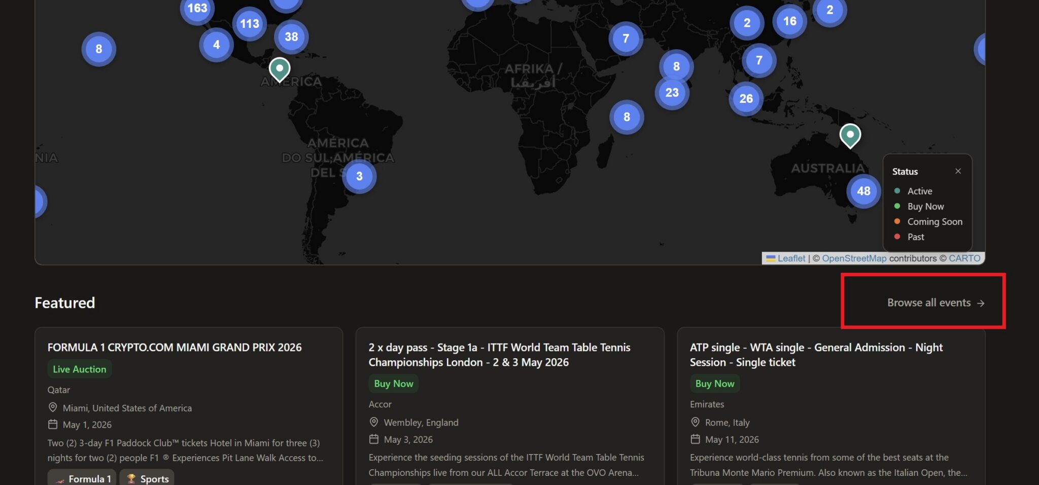 Oddly, by default, past events (which are no longer available) are not filtered out. I therefore recommend using the “Status” drop-down menu to filter out “Past events”. I also found it useful to filter out “coming soon”.