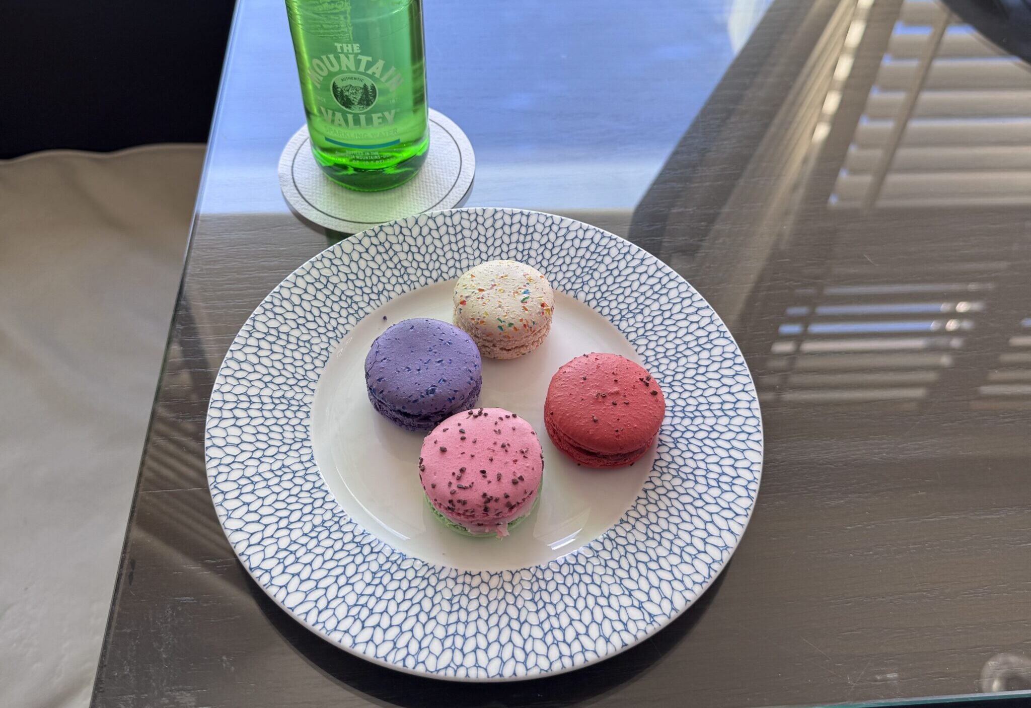 We were granted an early check-in (around 1 PM), and the desk agent noted my Titanium status and told us that we were eligible for a $50 food and beverage credit, which could be used at the hotel restaurant, bar, or with room service. Score! Additionally, a welcome gift of macarons and sparkling water was sent to our room shortly after check-in. I don’t believe our room was upgraded.
