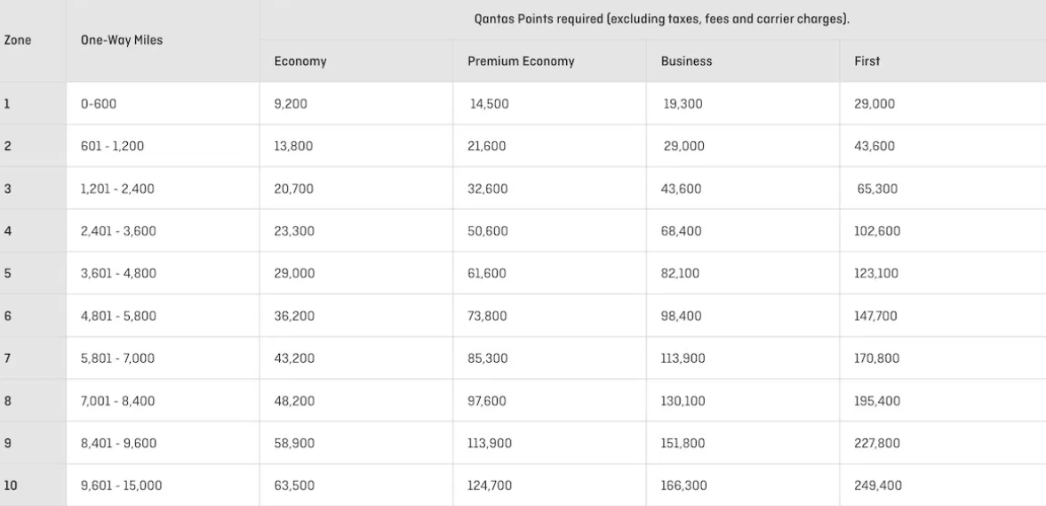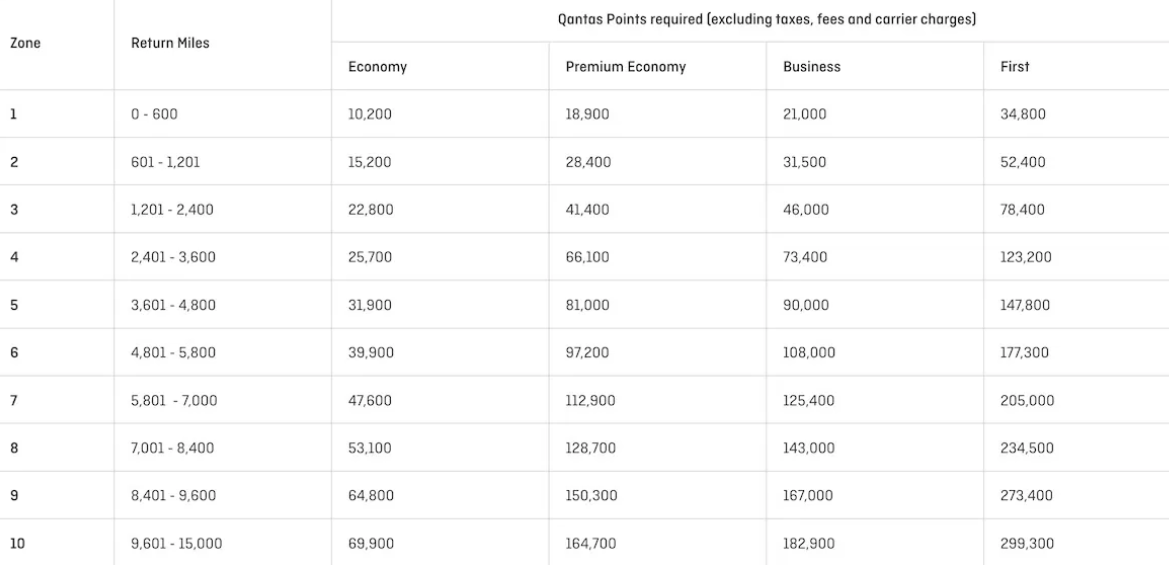 Qantas Award Charts