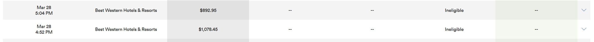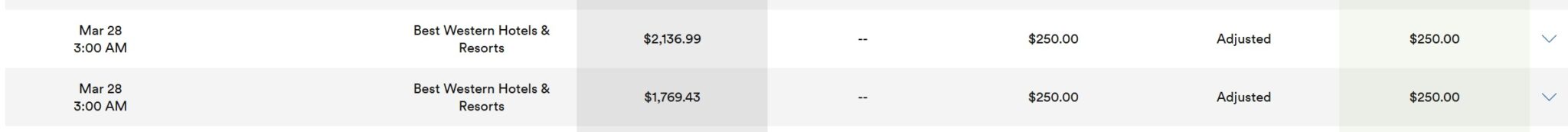 Eagle-eyed readers will notice that it says “adjusted” above (rather than ineligible) and that the purchase amounts for both hotels are roughly (though not exactly) doubled. I noted in a previous post about targeted elevated rates that I’ve noticed the purchase amounts are often increased after the purchase is credited. I suppose maybe this is how Capital One Shopping accounts for the elevated rewards on the back end.