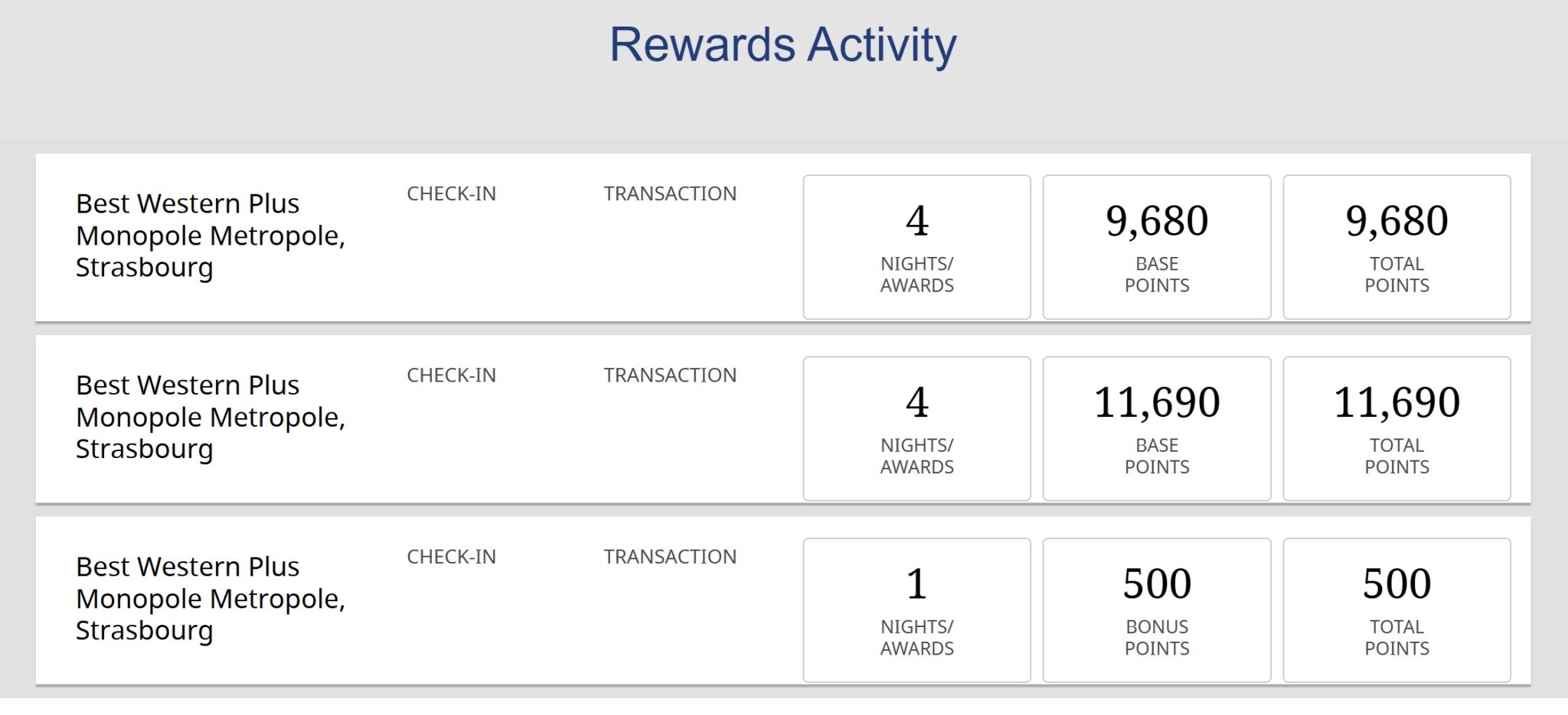The stay came and went. Best Western allows a member to earn points on up to 3 rooms at a time, so I earned more than 21,000 Best Western points for the two rooms.