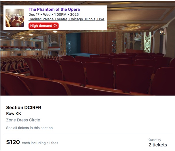 While in Chicago, I’d want to see a show or a sporting event. The Sapphire Reserve card’s $150 StubHub credit is perfect for that! Here are a couple of options that I think would be popular: