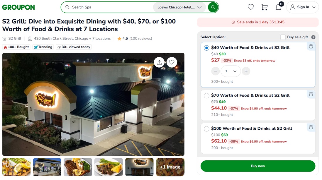 It happens that the closest eligible S2 Grill to the Loews Hotel is the S2 Express Grill Downtown, which gets an impressive 4.9 average review score on Google.