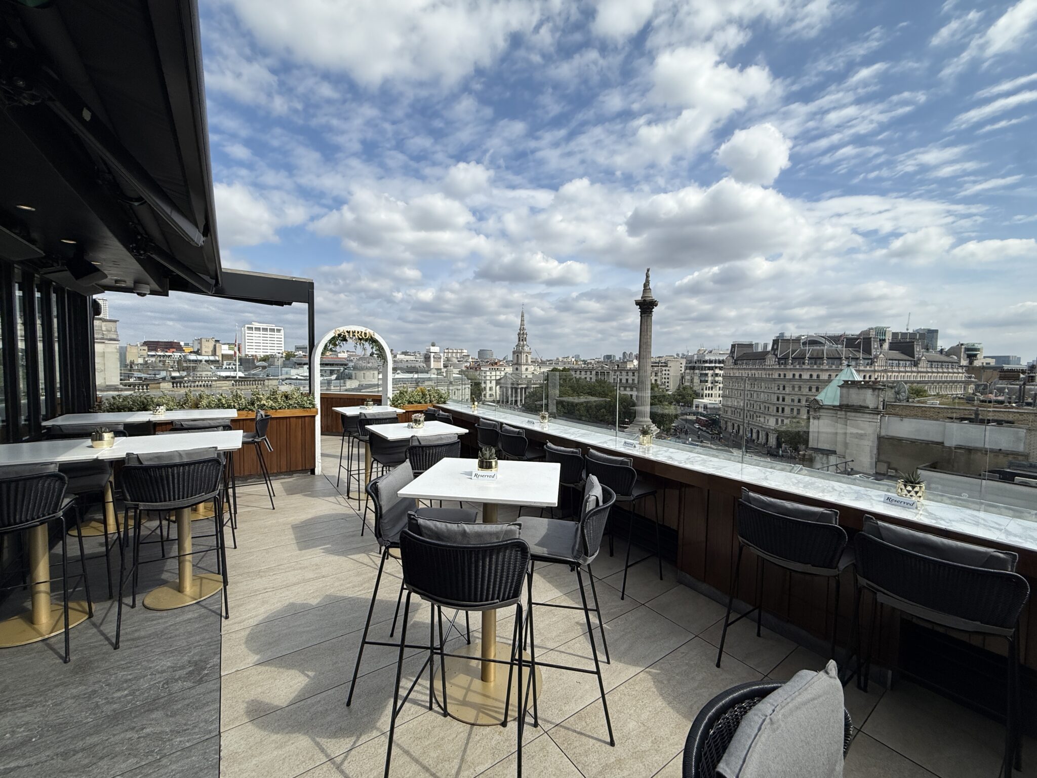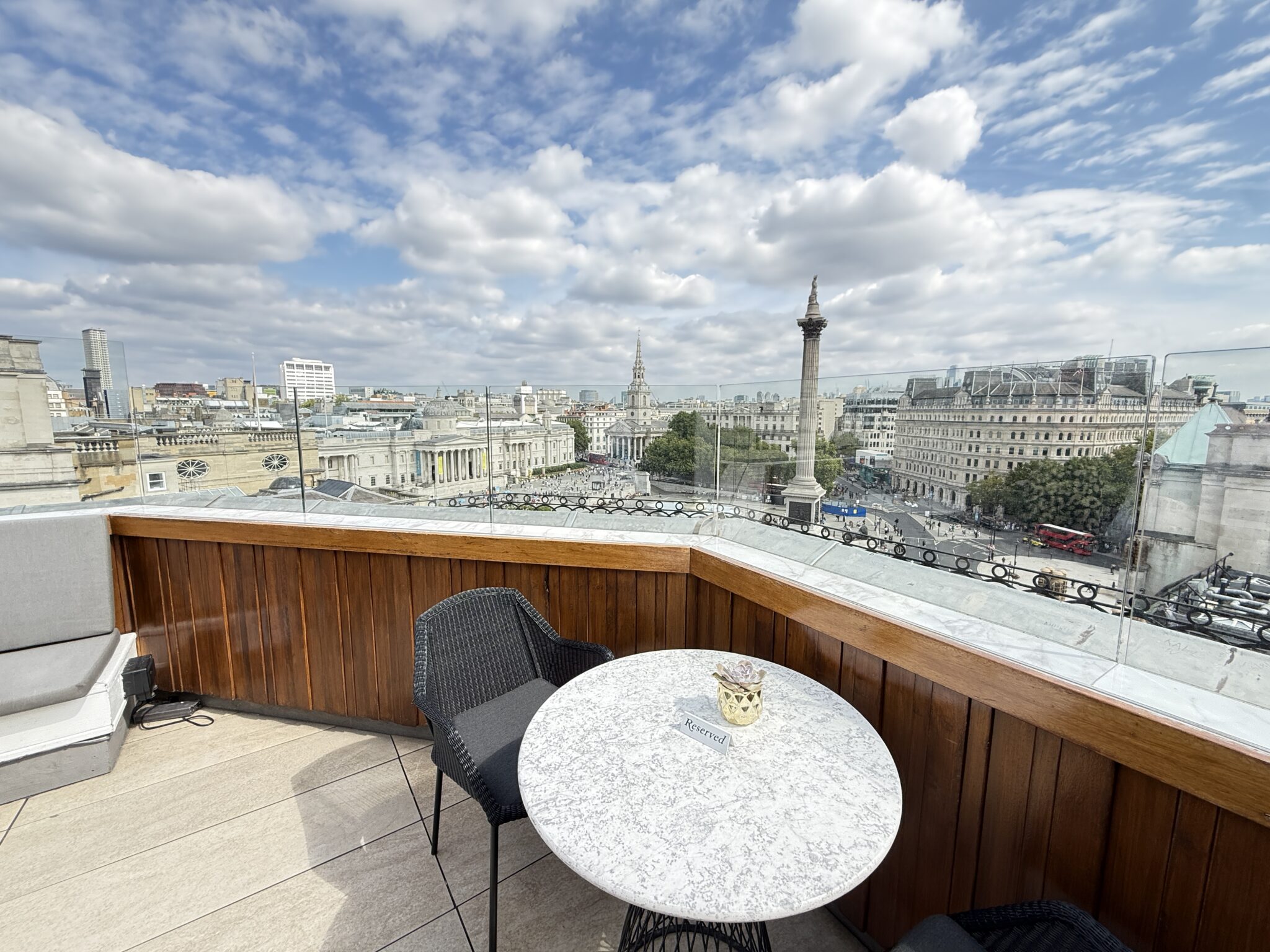 - The Rooftop: The star of the hotel, this rooftop cocktail lounge has a marvelous terrace that overlooks Trafalgar Square with sensational views both during the day and at night. The best tables are reserved in advance, so best to put your name in when you arrive if you fancy a tipple. Open M-W from 3 pm to 11 pm; Th-Sat until midnight (with a £35.00 per person minimum for indoor reservations, and £50.00 per person for all outdoor reservations). Closed Sunday.