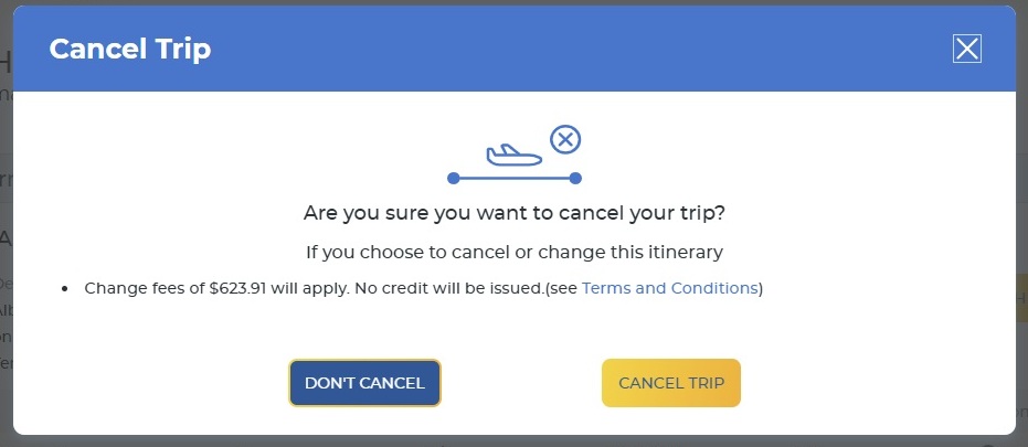 Next, I canceled our flights. During the cancelation process, I made sure to take a screenshot of the Allegiant website showing that the airfare was nonrefundable and that we wouldn’t receive any flight credit for the cancelation.