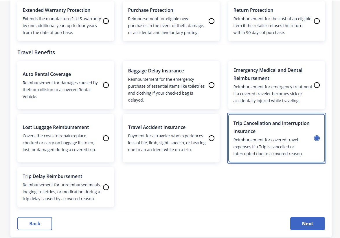 The Trip Cancellation and Trip Interruption benefit provides
