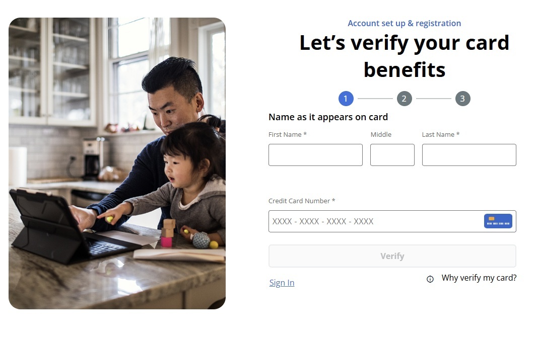 Registering for an account is easy. You just need to enter your name and card information to confirm eligibility.