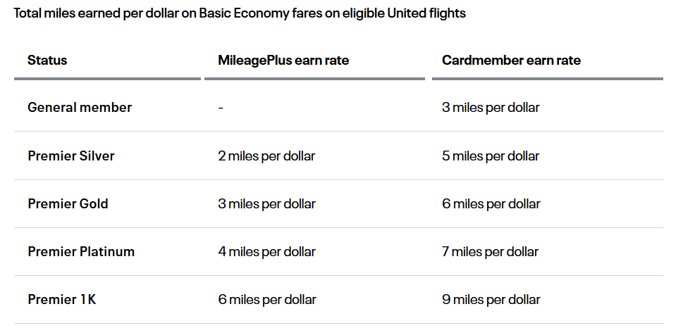 Exacerbating the earning rates themselves, United will also require you to hold a credit card to earn miles when flying basic economy. Elite members and cardholders will earn reduced rates, with both categories taking a 3-mile per dollar hit from non-basic tickets, as shown in the table below: