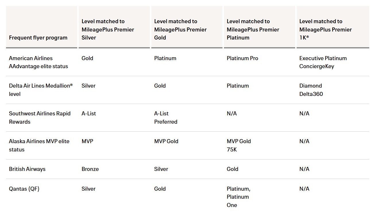 • To request a MileagePlus Status Match, a participant must be an authenticated member of MileagePlus and hold an active account with an eligible airline and have an eligible elite level valid for the current calendar year.