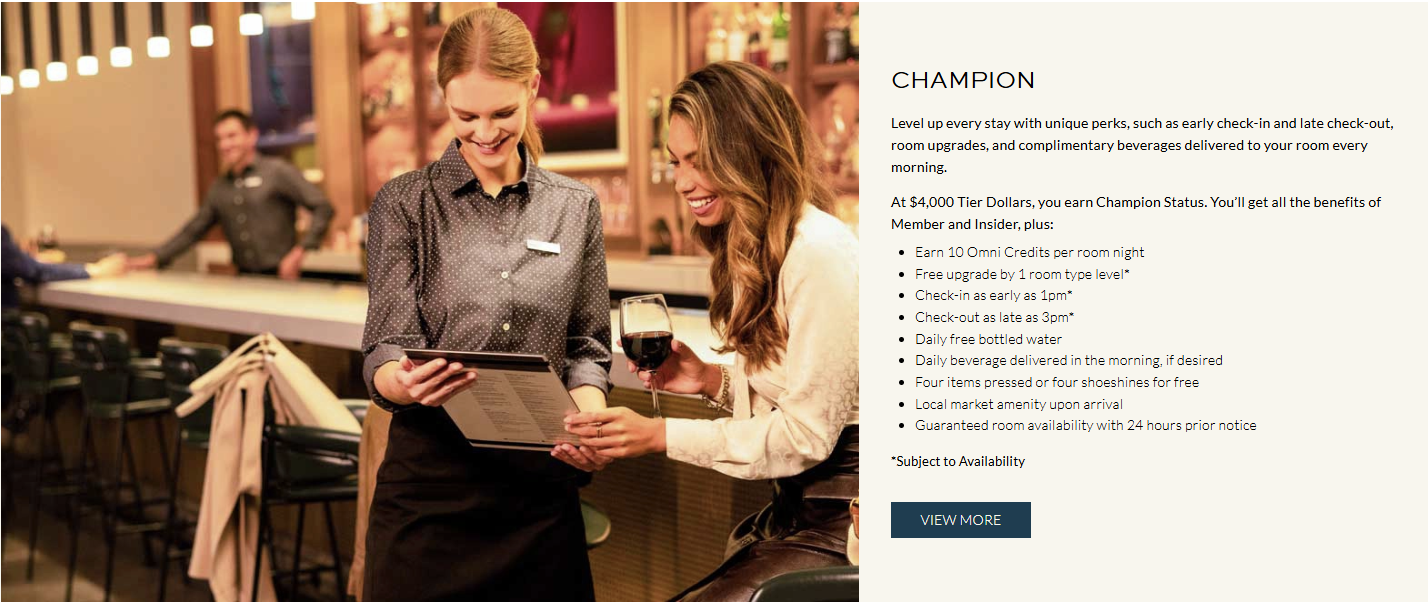 - Omni Champion benefits include: